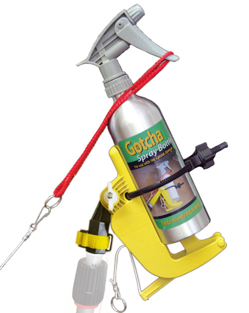 The Gotcha Sprayer Kit introduces the Eco Friendly option for getting rid of stinging insects with the Gotcha Sprayer Pro and our refillable 16oz Gotcha Spray Bottle. It's ideal to create your own recipe or trigger window cleaner, etc. The Gotcha Spray Bottle is a 16oz. Aluminum container can be refilled with your own solvents or degreasers, and triggered from the end of an extension pole (Purchased Separately). The Trigger is chemical resistant, offers a 40% greater output, and has an adjustable nozzle from mist to jet stream. There is less mess, less overspray, and uses less product. It is perfect for that "sneak attack" at those hard-to-reach areas, and reducing the risk of being stung.